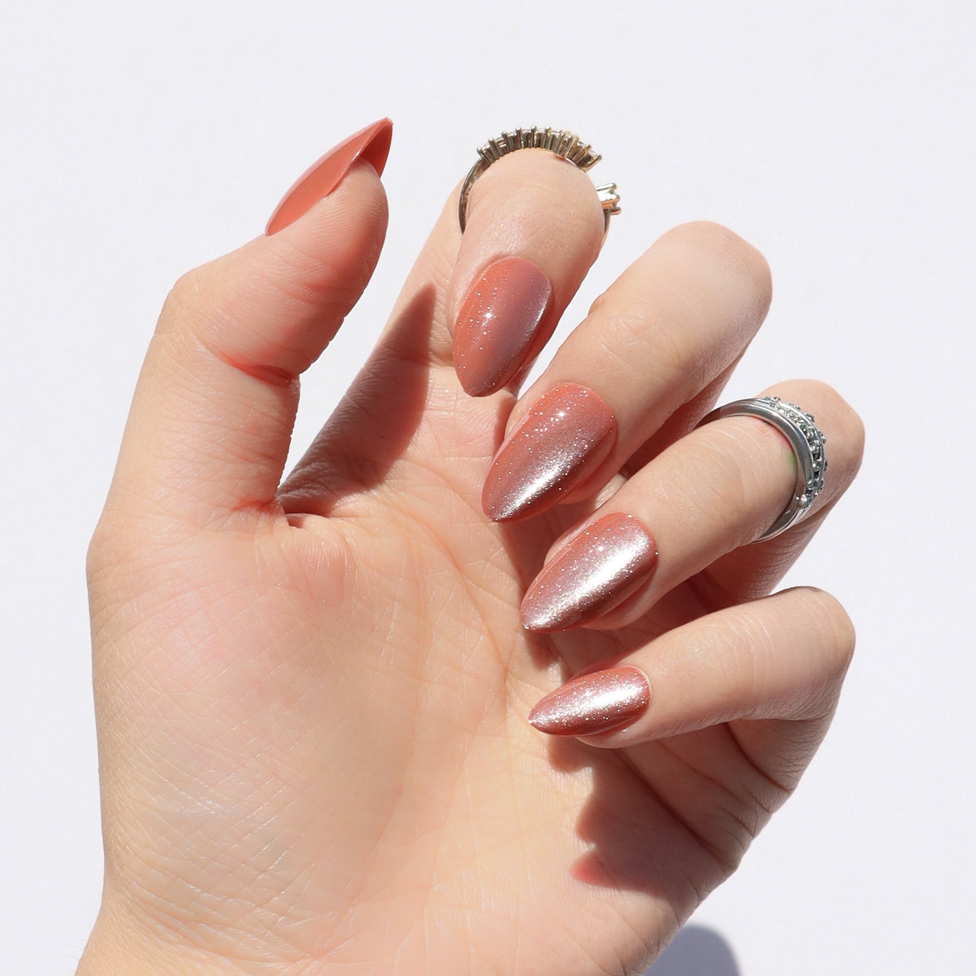 Apple Cider press-on nails pour on amber-gold tones that shimmer like fresh cider in the light. Finished with a juicy glazed shine. the short almond shape adds a cozy. casual touch that’s ideal for fireside days or hayride nights. As refreshing as the drink they’re named for. this set brings the full flavor of fall to your fingertips. year-round.