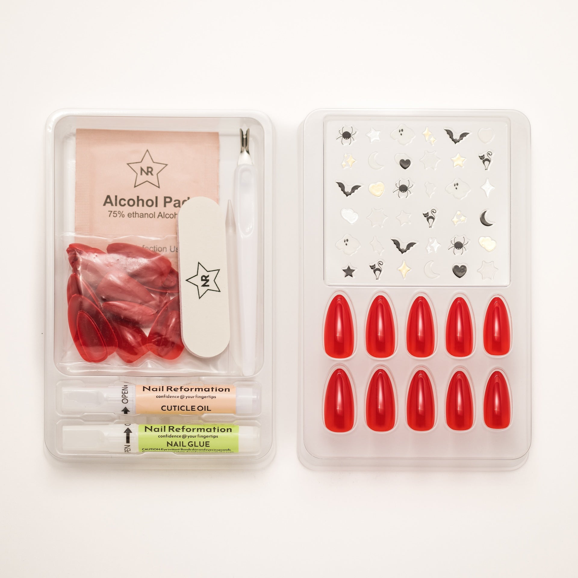 Customize your nails with nail art stickers. featuring blood-thirsty motifs like blood splatters. fangs. bats. and spiders. Get creative and make your Halloween nails stand out. With Bad Blood. your nails will be unforgettable.