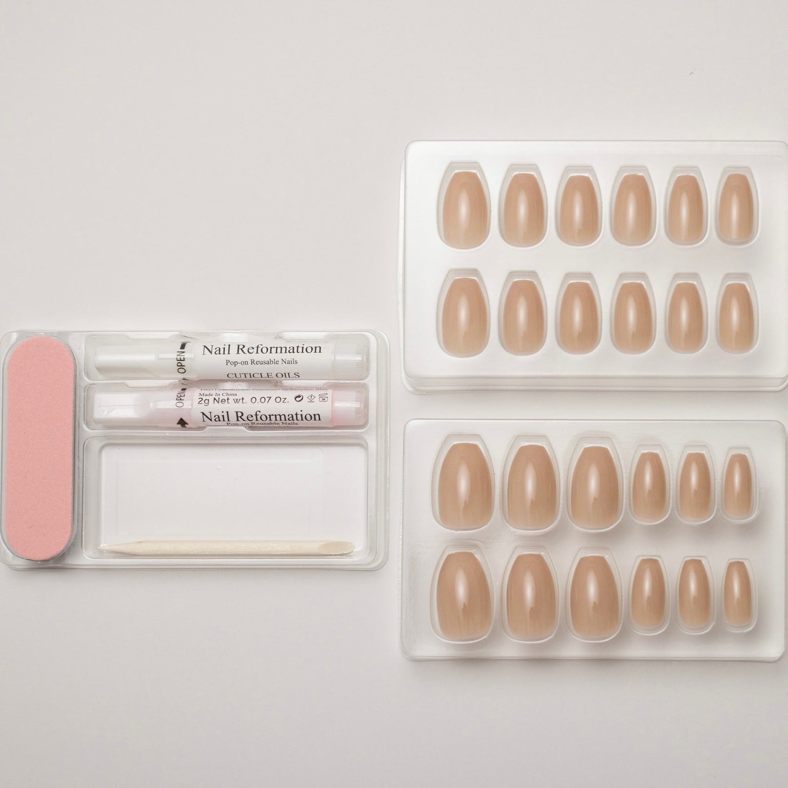 Let the neutral color of the bare nude reveal your natural beauty. This set of nails is ideal for dressing up or just to provide a simple and minimalist look.